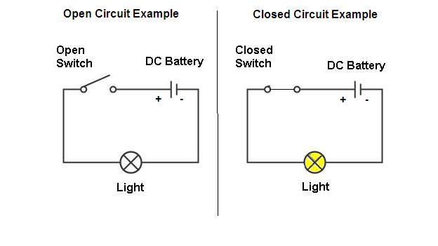 Electricity flows in a closed circuit and does not flow when a circuit is open.